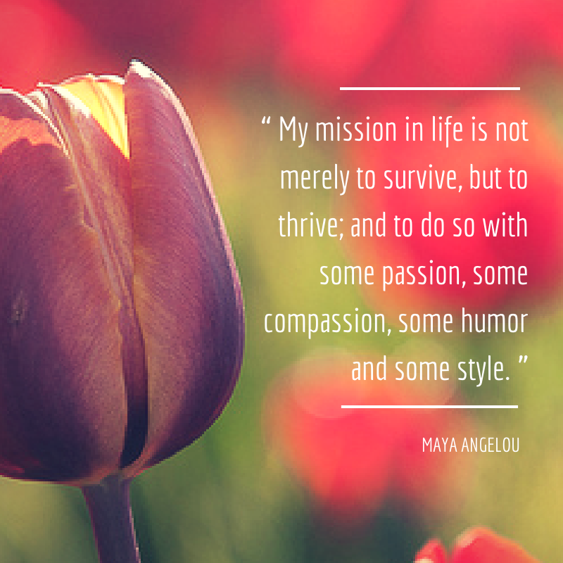 My mission in life is not merely to survive, but to thrive; and to do so with some passion, some compassion, some humour and some style.