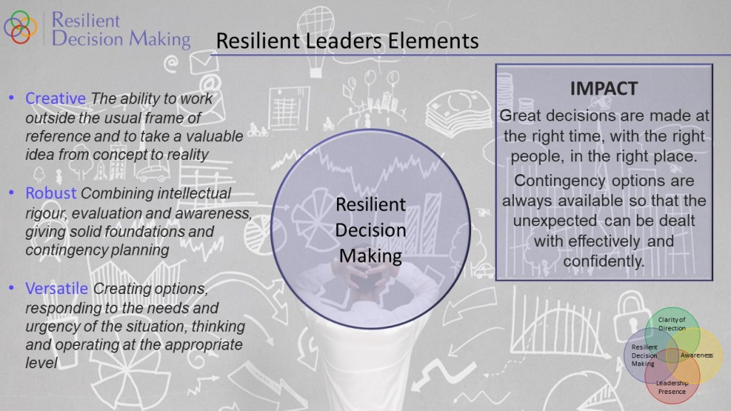 Knowing our strengths helps us to be aware of and to harness them. Through my training as a Resilient Leaders Elements consultant coach, I have spent the last 6 months reflecting on my strengths and areas for development. As part of the process you self-assess to identify your strengths across 4 elements (Clarity of Direction, Awareness, Leadership Presence and Resilient Decision-Making) and 12 facets (Strategic Intent, Unifying Purpose, Determination, Self, Others, Environment, Authentic, Serving, Intentional, Creative, Robust, Versatile).